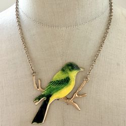 Vintage Bird Necklace Green Yellow green Enamel Branch Pendant Statement$18Carlsbad, CA
