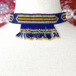 Handmade Beaded Choker Necklace Blue Fringe Seed Bead Tribal Boho Festival$45Carlsbad, CA