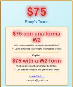 โTax Preparationโ$75Rancho Cucamonga, CA