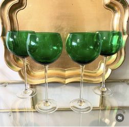 Vintage 9” H Emerald Green Balloon Wine Glasses - Set of 4$56St. Petersburg, FL