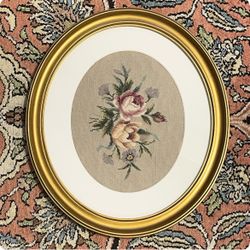 Vintage Floral Needlepoint in 15 1/2” x 13 3/4” Gold Matted Oval Frame$98St. Petersburg, FL