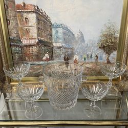 Vintage 6 1/2” H Heavy Cut Crystal Ice Bucket with Handles and/or Vintage Cut Crystal Coupe Glasses – Set of 4$110St. Petersburg, FL