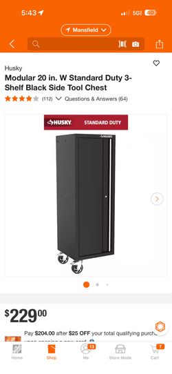 Husky Modular 20 in. W Standard Duty 3-Shelf Black Side Tool Chest$175Fort Worth, TX