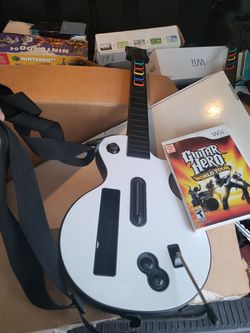 Complete in box Nintendo Wii guitar hero Guitar, Strap,Stickers,Box,Game.
