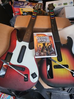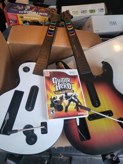 2 Nintendo Wii guitar hero guitars with straps and guitar hero world tour game.$120Yorkville, IL
