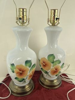 VINTAGE SET OF WHITE MILK GLASS LAMPS WITH YELLOW FLOWERS NO SHADES$30Altamont, NY