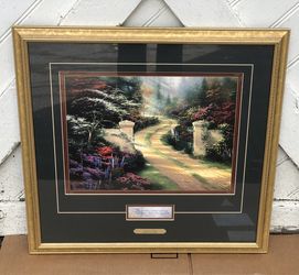 VINTAGE 1998 FRAMED SPRING GATE BY THOMAS KINKADE 22” X 21” COA$175Altamont, NY