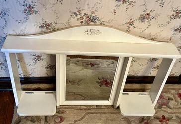 VTG WHITE 25”x17.5 WALL 2 SHELF BEVELED MIRROR 4 HOOKS ROSE DESIGN$20Altamont, NY