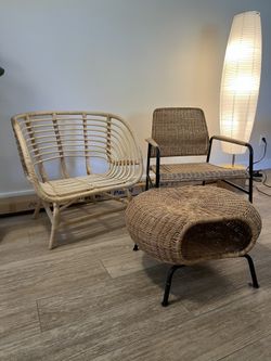 IKEA Rattan & Wicker Chair/Footstool Faux Plants$50San Diego, CA