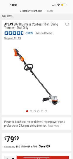 ATLAS 80V Brushless Cordless 16 in. String Trimmer - Tool Only Brand New $60Boca Raton, FL