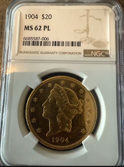 1904 $20 Gold Liberty PL62$6,250Lakeside, CA