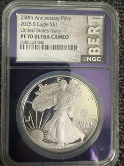 2025-S 250th Anniversary Privy United States Navy Silver Eagle coin$350Lakeside, CA