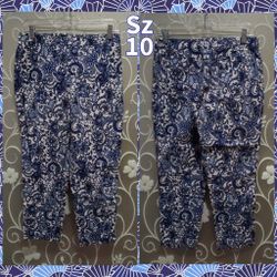 WOMENS BLUE & WHITE FLORAL CAPRI PANTS SIZE 10