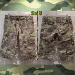 WOMENS CROPPED CAMO CAPRIS / LONG SHORTS SIZE 8