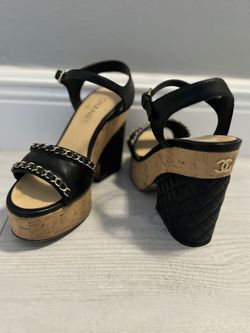 CHANEL Chanel Wedge Sole Sandals Lamb Skin Leather Quilted size 39 Coco Mark $800 Condition: Used Maximum width: 8 Heel height: 8 US size : 8.5 EU S$850Boca Raton, FL