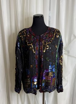Sequined TOGETHER Open Front Jacket, size L. Has one hook and eye closure at the neckline. Measurements: 24” from armpit to armpit lying flat on on$80Apopka, FL