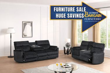 π₯ Black Corduroy Reclining Sofa & Loveseat Set w/ Console β Modern Comfort π₯$1,899Decatur, GA