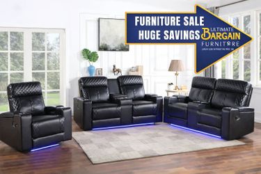 π₯ LED Power Reclining Loveseat Set β Black Leather w/ Lights & Cupholders π₯$1,399Decatur, GA