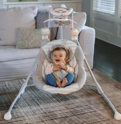 Ingenuity InLighten Baby Swing, Easy-Fold Frame, Swivel Infant Seat, Lights - Landry the Lion (Unisex )BRAND NEW$80Pompano Beach, FL