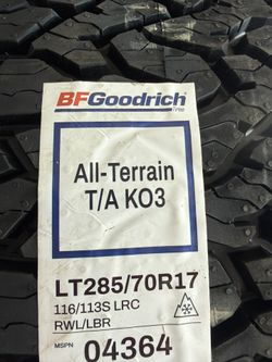 BFGOODRICH K03β¦LT/285/70/17.. Load range C.. Made In The USA πΊπΈ.. 4 BRAND NEW Tires.π $1350$1,350West Covina, CA