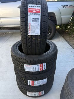 235/45/zr18β¦. Kumho tires.π Four Brand New Tiresβ¦ With Installation And Balance.. $600$600West Covina, CA