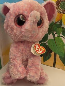 Ty Beanie Boo Ellie Pink Elephant Plush Toy 2014 Retired Glitter Eyes$5Montgmry, IL