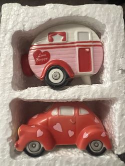 Classic vw Pink & Red Heart Camper and Car Toy Set - salt and pepper shakers $15Palmdale, CA