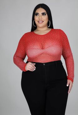 1x 2x Red Sheer Rhinestone Bodysuit Available $20Palmdale, CA