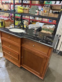 Home Decorators Collection Hampton Harbor 48 in. W x 22 in. D x 35 in. H Single Sink Freestanding Bath Vanity in Sequoia with Black Granite Top$480Houston, TX