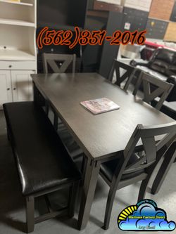 Grey Wood Dining Table 4 Chair With Bench Kitchen Set $698Long Beach, CA