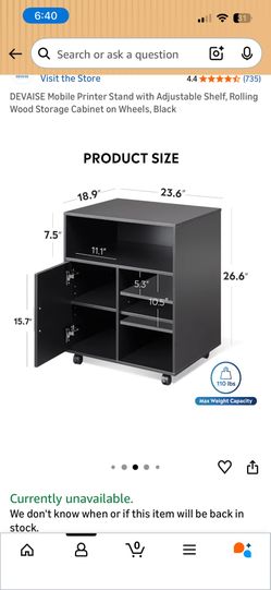 Mobile Printer Stand with Adjustable Shelf, Rolling Wood Storage Cabinet on Wheels, Black$10Oceanside, CA