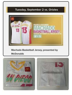 Manny Machado Basketball Jersey Giveaway Size Large $20Oceanside, CA