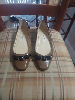 Jimmy Choo Brown Flats Patent Leather Cryatal Embellishments Ballet Square Toes Size 7$120Boynton Beach, FL