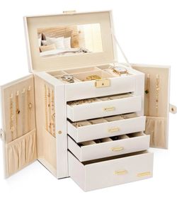 Jewelry Box Mirrored Watch Organizer Necklace Ring Earring Storage Lockable Gift Case (White + Gold)$35Carson, CA