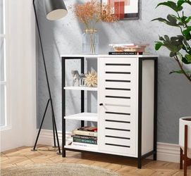 NEW 4-Tier White and Black Storage Cabinet, Bookshelf, Multipurpose Cabinet, 3 Open Shelves with Door Shutters for Kitchen, Living Room, Bathroom, $49Carson, CA