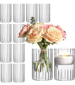 Glass Cylinder Vases Pack of 12, Clear Ribbed Bud Vases for Centerpieces Weeding Decoration, 6 inch Tall Clear Flower Vases in Bulk, Hurricane Candle $30Long Beach, CA