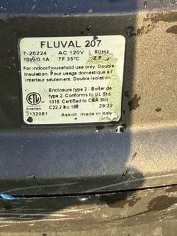 Fluval 207 Performance Canister Filter 120Vac, 60Hz$120Miami, FL