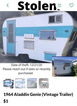 Vintage Aladdin Genie Travel Trailer 1964-Stolen$1Sacramento, CA