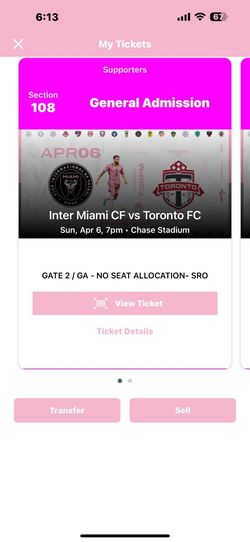 ON SALE 2 INTER MIAMI TICKETS $120 BOTH$120Pompano Beach, FL