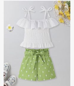 Toddler Girl Clothes Tie Knot Shoulder Sleeveless Ruffle Tops Bow Tie Waist Shorts Toddler Clothes for Girls$8Centerville, OH