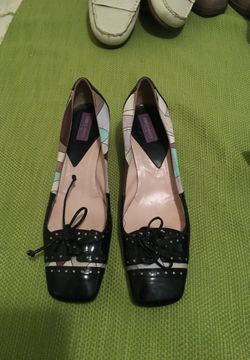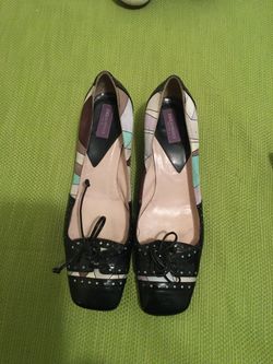 37 or 7 US. Emilio Pucci black patent leather toe with silk patterned fabric$40Fairway, KS