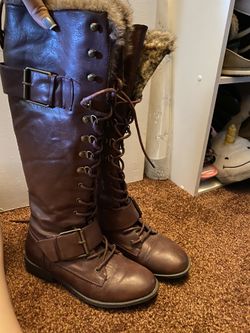 Brown Leather Boots With Fur Size 6$15Corona, CA