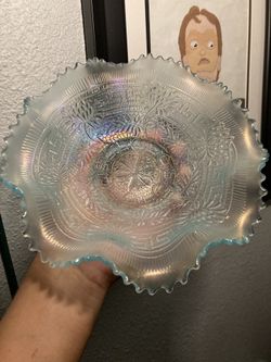 ICE BLUE Northwood Carnival Glass Embroidered Mums Pattern Bowl$175Santa Ana, CA