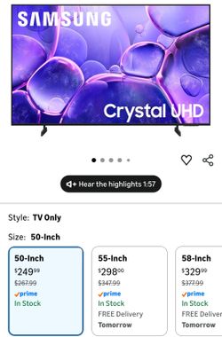 Samsung 50-Inch Class Crystal UHD U8000F 4K Smart TV (2025 Model) - Read$100Philadelphia, PA