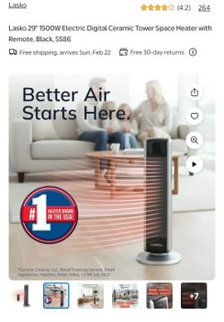 Lasko 29" 1500W Electric Digital Ceramic Tower - NEW$60Philadelphia, PA