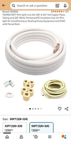 TAUROX 50FT Mini Split Line Set 3/8" & 3/4" O.D Copper Pipes Tubing and 3/8" - NEW$300Philadelphia, PA