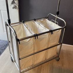 3 Bag Laundry Sorter Rolling Cart With Rack Hanging $60Oakland, CA