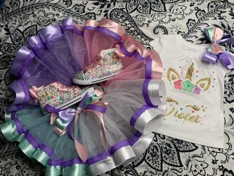 Unicorn Birthday Tutu Set With Bedazzled Converse$135Spring Valley, CA