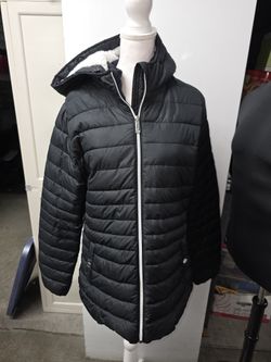 Calvin Klein Black Faux Fur Hooded Puffer Jacket Women’s size medium $50Las Vegas, NV