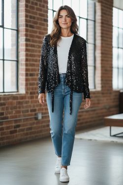 Chico's Black Sequin Bolero Evening Mesh Open Cardigan Nylon Top Women's Sz 1.$17Phoenix, AZ